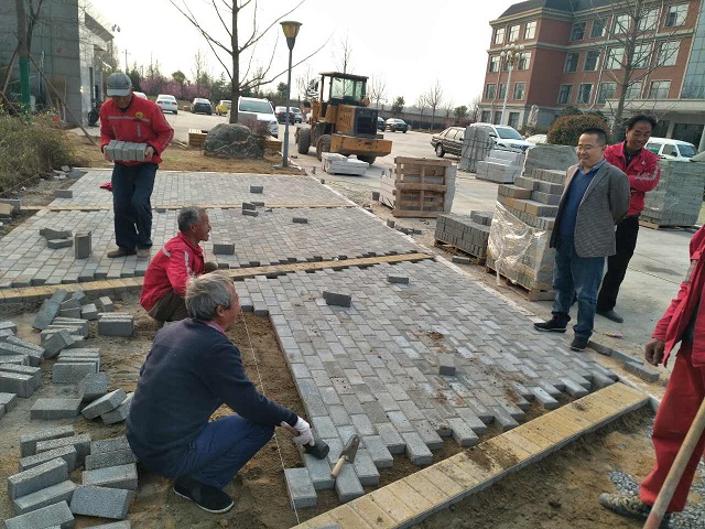 廉政教育基地院内提升改造工作正在进行,目前已铺设步道砖280平方米,安装路侧石300余米。